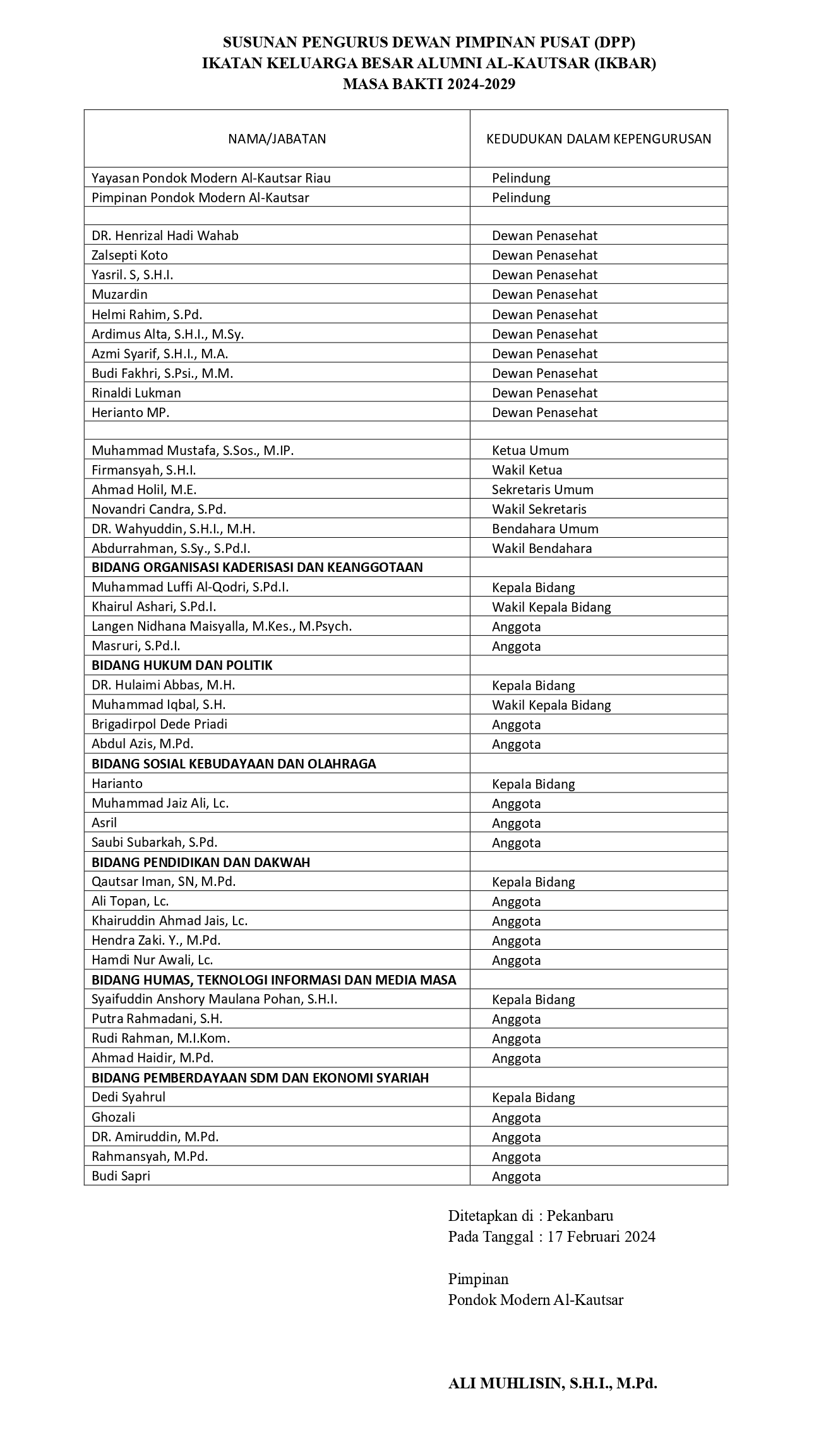SK Pengurus DPP IKBAR